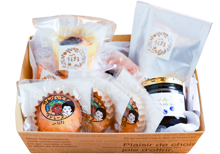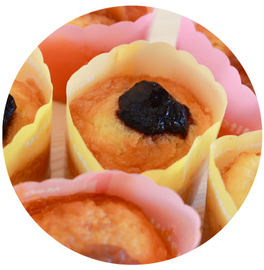 うえまるの採れたてブルーベリーをジャムにして、マフィンやチーズケーキなどいろんな味わいで楽しんでいただけます。